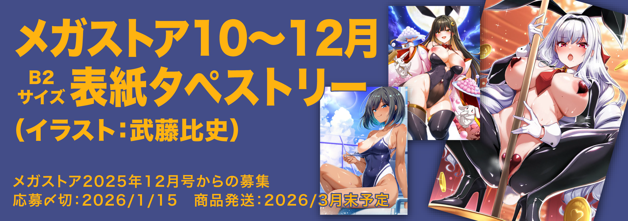 武藤比史 メガストア10〜12月号表紙タペストリー (メガストア2025年12月号からの募集) 2026/1/15〆切 発送2026/3月末予定
